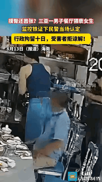 “猥亵女人还敢这么嚣张!”海南三亚,女子在餐厅打蘸料icon时,被身后男子摸了一下屁股,女子转身看到是一个油腻大叔,又羞又怒,质问为什么要猥亵她!男子狡辩说:“你别乱说,我只是不小心碰到了一下,怎么能叫猥亵?”随后双方发生争执,女子报警,警察调取监控视频后让男子后悔莫及!警方:证据确凿,拘留10天!